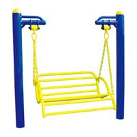 使用方法:可二人坐在上面,坐在坐板上擺動,以自身的重力前后擺動。